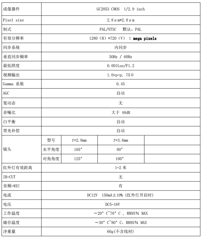 AHD高清摄像头